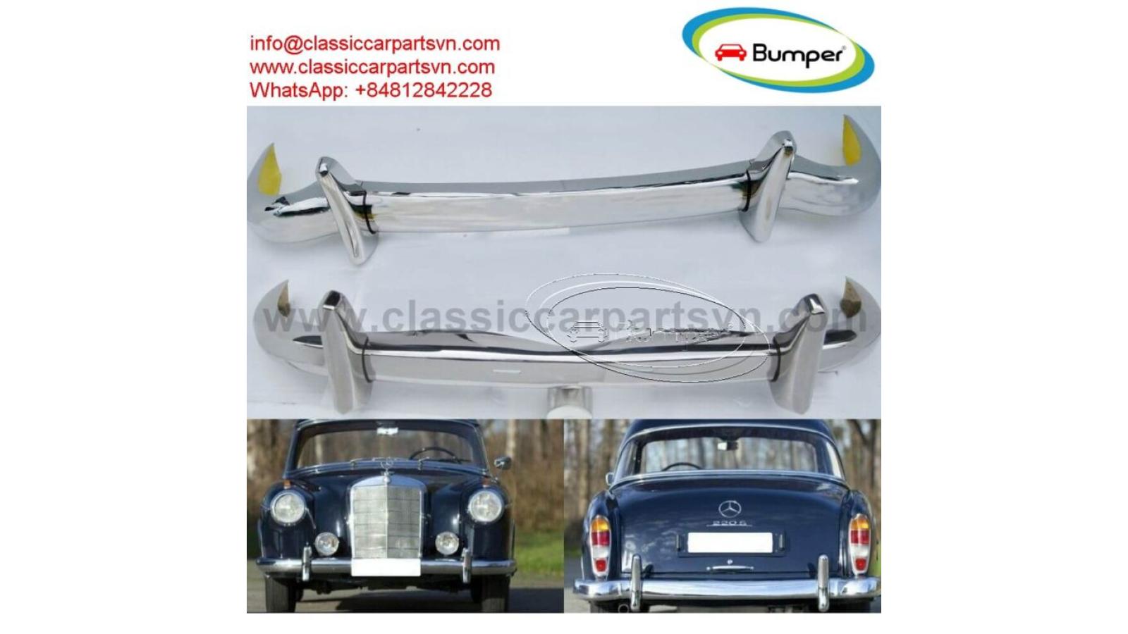 Mercedes Ponton W180 W128, coupĆ© and convertible 6 cylinder models 220A, 220S, 220SE (1954-1960) and 219 (from 1957). A set of 1 front bumper in 3 parts, 1 rear bumper in 3 parts, 4 overriders, bolts and screw. The product has shape and size like the original samples. So, They perfect fit on the car. Products are made of 304 stainless steel imported from Japan and India, especially with a chrome content higher than 30%, so they never rust, do not corrode or peel over time. Polished product ā with a perfect shine (like chrome). This is the perfect replacement. Please visit the link: classiccarpartsvn.com/product/mercedes-ponton-w180-w128-6-cyl-coupe-cabrio/ If you need all parts for any classic car, please contact me. Web: classiccarpartsvn.com Email: info@classiccarpartsvn.com Fanpage: facebook.com/profile.php?id=100088684251588 WhatsApp: +84 81 284 2228Mercedes Ponton W180 W128, coupĆ© and convertible 6 cylinder models 220A, 220S, 220SE (1954-1960...