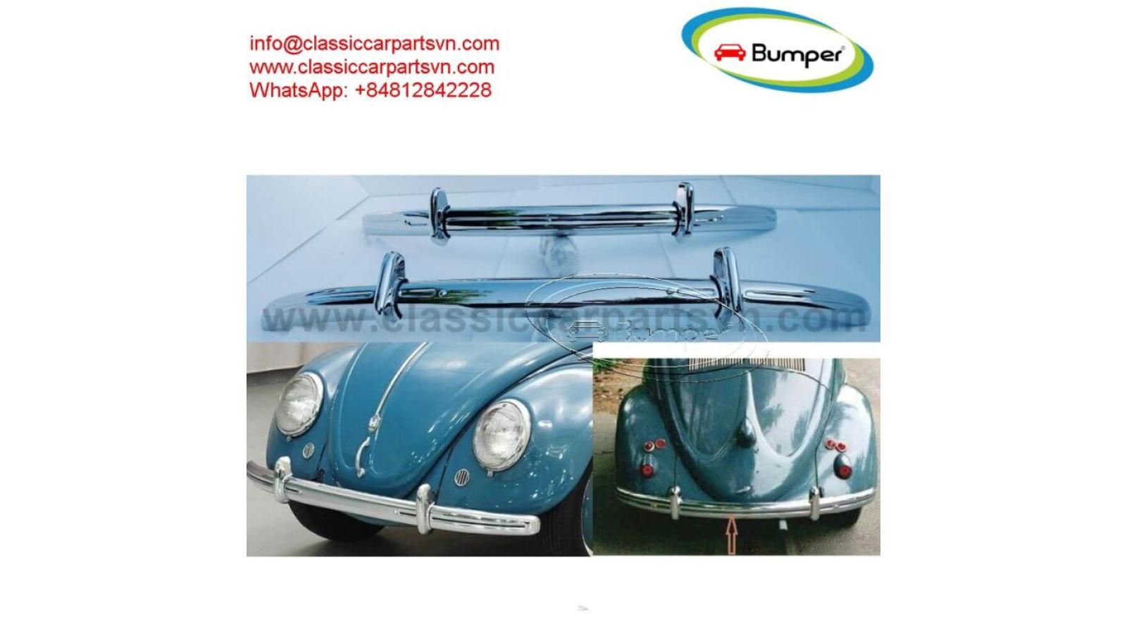 VW Beetle Split year (1950 – 1953) bumpers by stainless steel new A set bumper of a front bumper with 2 x over riders, a rear bumper with 2 x over riders, 4pcs x bracket steel, bolts and screw. The product has shape and size like the original samples. So, They perfect fit on the car. Products are made of 304 stainless steel imported from Japan and India, especially with a chrome content higher than 30%, so they never rust, do not corrode or peel over time. Polished product – with a perfect shine (like chrome). This is the perfect replacement. Please visit the link: classiccarpartsvn.com/product/vw-beetle-split-year-1953-bumpers/ If you need all parts for any classic car, Please contact me Web: classiccarpartsvn.com Email: info@classiccarpartsvn.com Fanpage: www.facebook.com/profile.php?id=100088684251588 WhatsApp: +84 81284 2228 More than that, we always want to work towards developing more new models. So we are searching for samples from any customers who can cooperate with us to expand some kinds of products in stainless steel, rubber, steel, aluminum, copper, chrome such as bumpers, trims, plate number frames, parts of classic cars, modern cars, stainless steel tools for high-class bathrooms, stainless steel parts for high-end tables and chairs. My company's terms of sale: We always want to bring satisfaction to all customers around the world. Therefore, the goal is to ensure that all customers have a happy, satisfied and enjoyable experience with my company's products. We promise to try our best to provide the best products and absolute satisfaction to valuable buyers like you.VW Beetle Split year (1950 – 1953) bumpers by stainless steel new A set bumper of a front bumper...