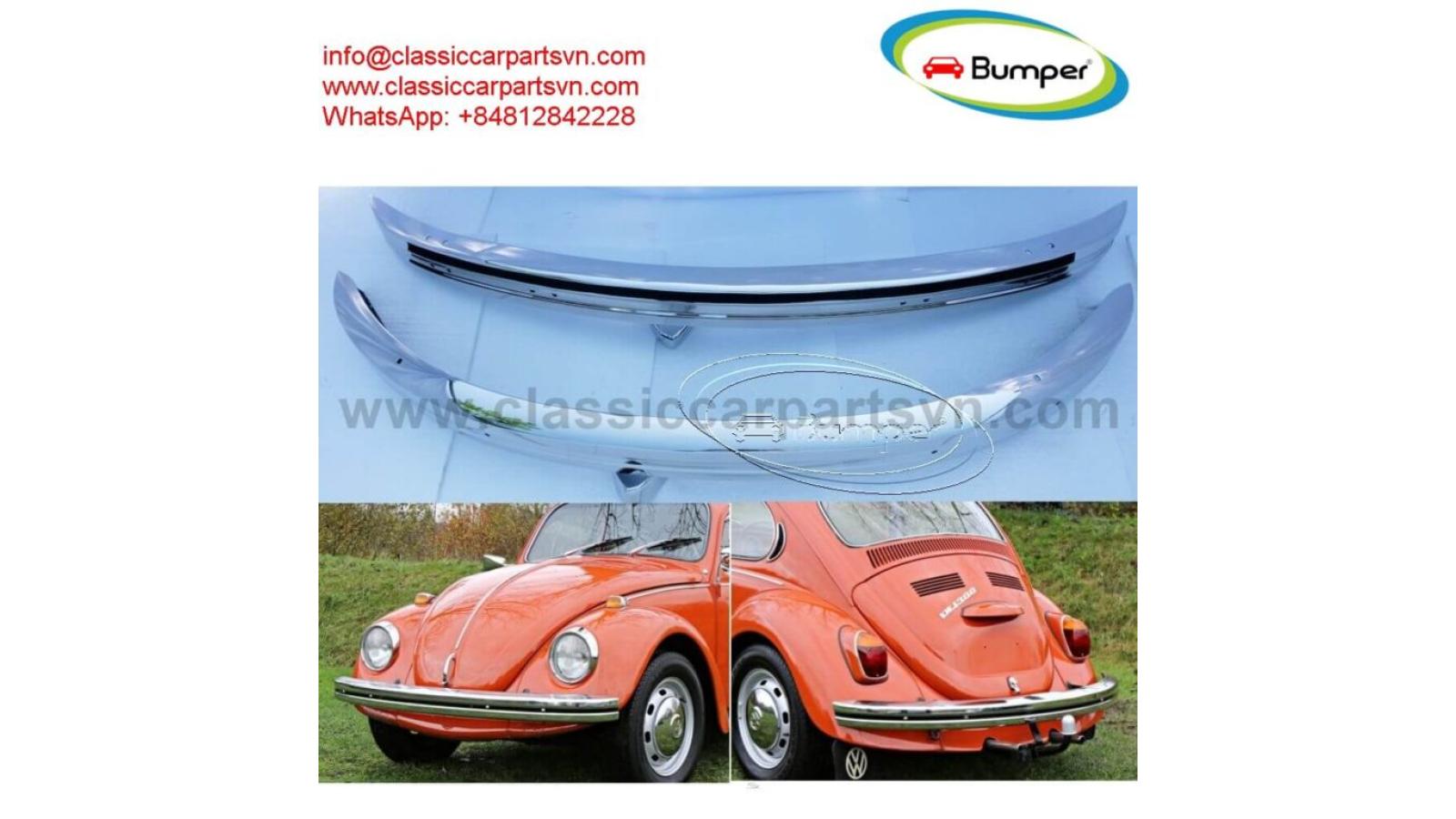 VW Beetle year (1968-1974) bumpers by stainless steel new A set of front and rear bumpers, bolts and screws. VW 1300 1302 1303 year: midyear 1967 to midyear 1974. VW 1200 year: midyear 1973 to midyear 1974. The product has shape and size like the original samples. So, They perfect fit on the car. Products are made of 304 stainless steel imported from Japan and India, especially with a chrome content higher than 30%, so they never rust, do not corrode or peel over time. Polished product – with a perfect shine (like chrome). This is the perfect replacement. Please visit the link: classiccarpartsvn.com/product/vw-beetle-year-1968-1974-bumpers/ If you need all parts for any classic car, Please contact me. Web: classiccarpartsvn.com Email: info@classiccarpartsvn.com Fanpage: : www.facebook.com/profile.php?id=100088684251588 WhatsApp: +84 81284 2228 More than that, we always want to work towards developing more new models. So we are searching for samples from any customers who can cooperate with us to expand some kinds of products in stainless steel, rubber, steel, aluminum, copper, chrome such as bumpers, trims, plate number frames, parts of classic cars, modern cars, stainless steel tools for high-class bathrooms, stainless steel parts for high-end tables and chairs. My company's terms of sale: We always want to bring satisfaction to all customers around the world. Therefore, the goal is to ensure that all customers have a happy, satisfied and enjoyable experience with my company's products. We promise to try our best to provide the best products and absolute satisfaction to valuable buyers like you.VW Beetle year (1968-1974) bumpers by stainless steel new A set of front and rear bumpers, bolts...