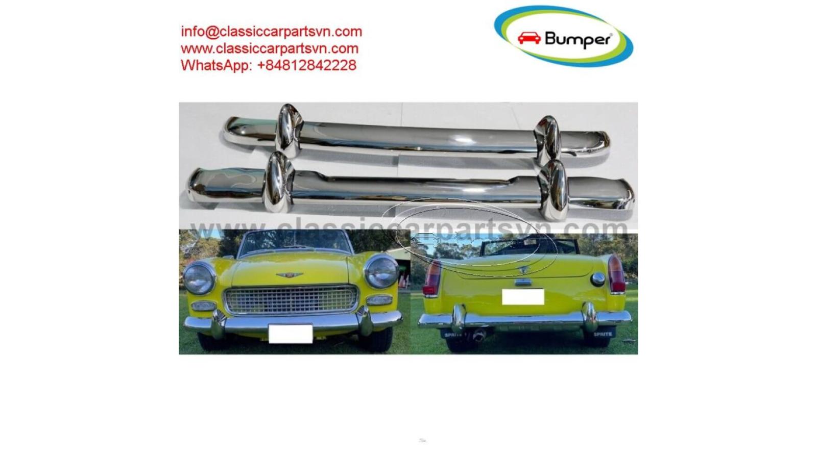 Austin Healey Sprite MK3 bumpers (1964 -1965) A set bumper of a front bumper with 2 x over riders, a rear bumper with 2 x over riders, bolts and screws. The product has shape and size like the original samples. So, They perfect fit on the car. Products are made of 304 stainless steel imported from Japan and India, especially with a chrome content higher than 30%, so they never rust, do not corrode or peel over time. Polished product – with a perfect shine (like chrome). This is the perfect replacement. Please visit the link: classiccarpartsvn.com/product/austin-healey-sprite-mk3-bumpers-1964-1965/ If you need all parts for any classic car, please contact me. Web: classiccarpartsvn.com Email: info@classiccarpartsvn.com Fanpage: facebook.com/profile.php?id=100088684251588 WhatsApp: +84 81 284 2228Austin Healey Sprite MK3 bumpers (1964 -1965) A set bumper of a front bumper with 2 x over rider...