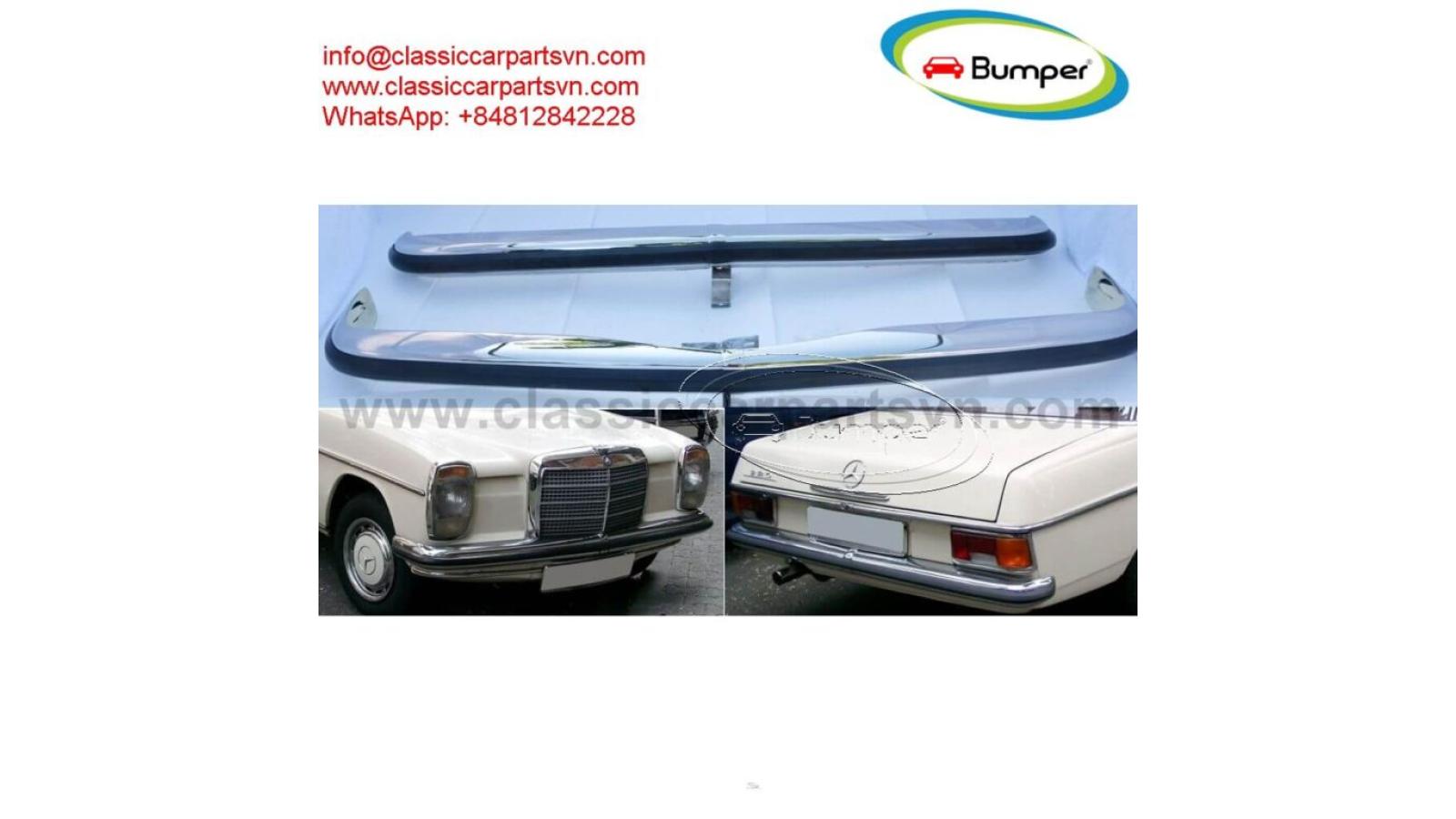Mercedes Benz W114/ 115 sedan series 1 year (1968 -1976) bumper. A set bumper of a front bumper in 2 parts, a cover. A rear bumper in 2 parts, a cover, rubber trims for front and rear bumper. Bolts and screw. The product has shape and size like the original samples. So, They perfect fit on the car. Products are made of 304 stainless steel imported from Japan and India, especially with a chrome content higher than 30%, so they never rust, do not corrode or peel over time. Polished product – with a perfect shine (like chrome). This is the perfect replacement. Please visit the link: classiccarpartsvn.com/product/mercedes-w114-w115-sedan-series-1-bumpers/ If you need all parts for any classic car, please contact me. Web: classiccarpartsvn.com Email: info@classiccarpartsvn.com Fanpage: facebook.com/profile.php?id=100088684251588 WhatsApp: +84 81 284 2228Mercedes Benz W114/ 115 sedan series 1 year (1968 -1976) bumper. A set bumper of a front bumper ...
