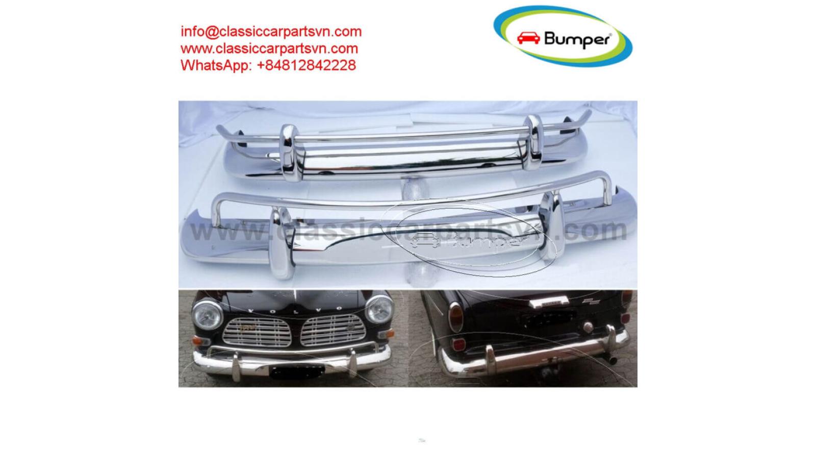 Volvo Amazon USA style (1956-1970) bumpers by stainless steel One set includes: 1 front bumper in 3 parts, 2 overrides, 1 towel rails and 1 rear bumper in 3 parts, 2 overrides, 1 towel, bolts and screws. The product has shape and size like the original samples. So, They perfect fit on the car. Products are made of 304 stainless steel imported from Japan and India, especially with a chrome content higher than 30%, so they never rust, do not corrode or peel over time. Polished product – with a perfect shine (like chrome). This is the perfect replacement. Please visit the link: classiccarpartsvn.com/product/volvo-amazon-usa-style-1956-1970-bumpers/ If you need all parts for any classic car, Please contact me. Web: https://classiccarpartsvn.com Email: info@classiccarpartsvn.com Fanpage: : www.facebook.com/profile.php?id=100088684251588 WhatsApp: +84 81284 2228Volvo Amazon USA style (1956-1970) bumpers by stainless steel One set includes: 1 front bumper i...