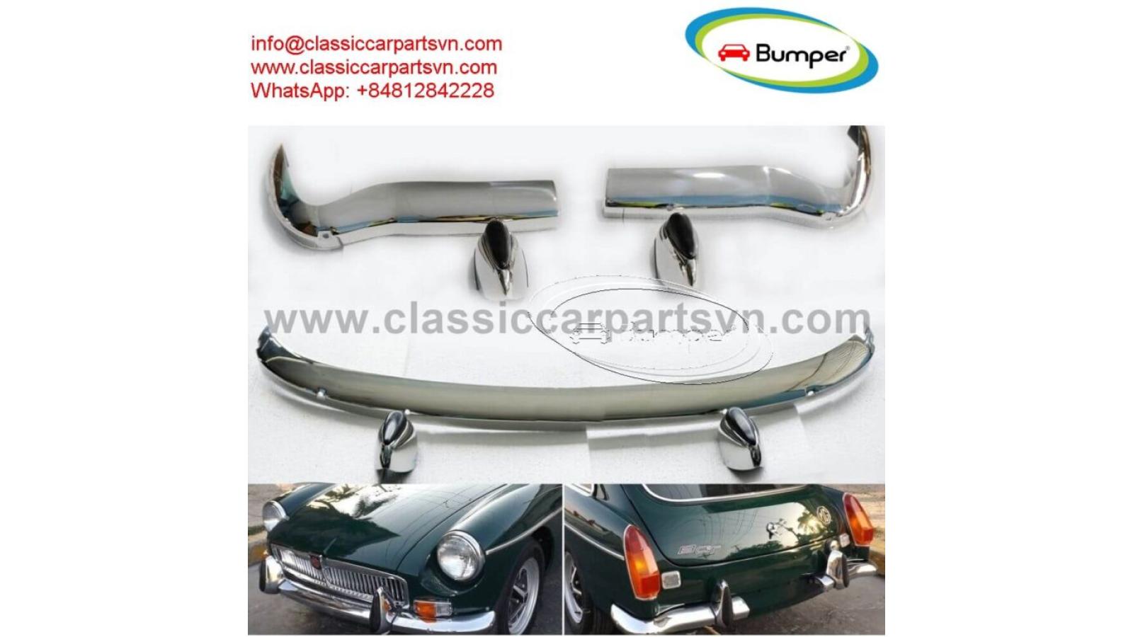 MGB GT 1970 Split bumpers full set new A set of 1 front bumper with 2x over riders, 1 rear bumper in 2 parts and 2x over riders, bolts and screw for full set. The product has shape and size like the original samples. So, They perfect fit on the car. Products are made of 304 stainless steel imported from Japan and India, especially with a chrome content higher than 30%, so they never rust, do not corrode or peel over time. Polished product – with a perfect shine (like chrome). This is the perfect replacement. Please visit the link: classiccarpartsvn.com/product/mgb-gt-1970-split-bumpers-full-set-new/ If you need all parts for any classic car, please contact me. Web: classiccarpartsvn.com Email: info@classiccarpartsvn.com Fanpage: facebook.com/profile.php?id=100088684251588 WhatsApp: +84 81 284 2228MGB GT 1970 Split bumpers full set new A set of 1 front bumper with 2x over riders, 1 rear bumpe...