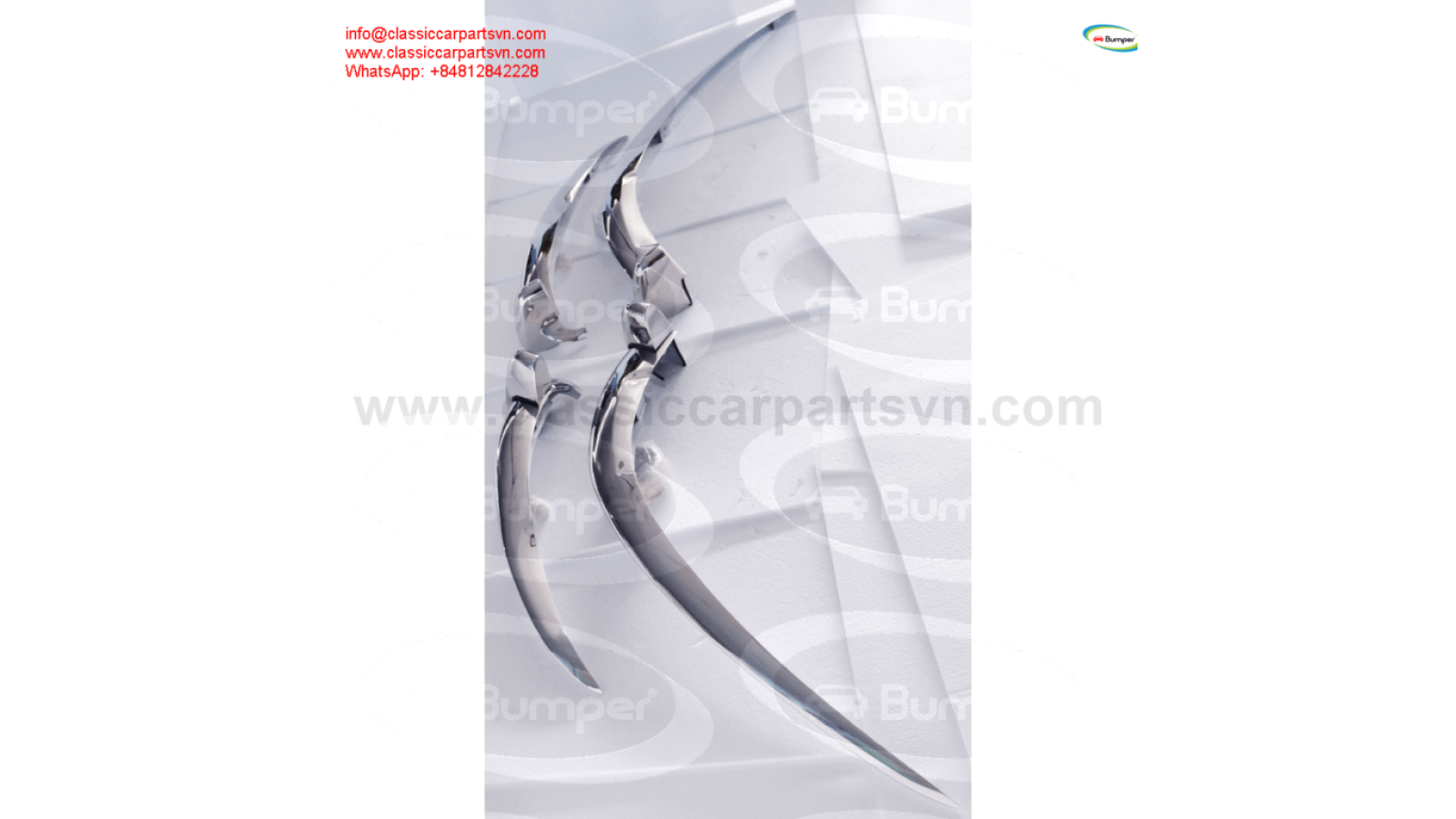Jaguar E-Type XKE Series 1 and Series 1 1/2 bumper new A set of 2pcs a front bumper with 2pcs grab and 2 pcs overrider, 2pcs a rear bumper and 2 pcs overrider, bolts and screw for full set. The product has shape and size like the original samples. So, They perfect fit on the car. Products are made of 304 stainless steel imported from Japan and India, especially with a chrome content higher than 30%, so they never rust, do not corrode or peel over time. Polished product – with a perfect shine (like chrome). This is the perfect replacement. Please visit the link: classiccarpartsvn.com/product/jaguar-e-type-xke-series-1-1961-1966-and-series-1-1-2-1966-1968-bumper-new/ If you need all parts for any classic car, please contact me. Web: classiccarpartsvn.com Email: info@classiccarpartsvn.com Fanpage: facebook.com/profile.php?id=100088684251588 WhatsApp: +84 81 284 2228Jaguar E-Type XKE Series 1 and Series 1 1/2 bumper new A set of 2pcs a front bumper with 2pcs gr...