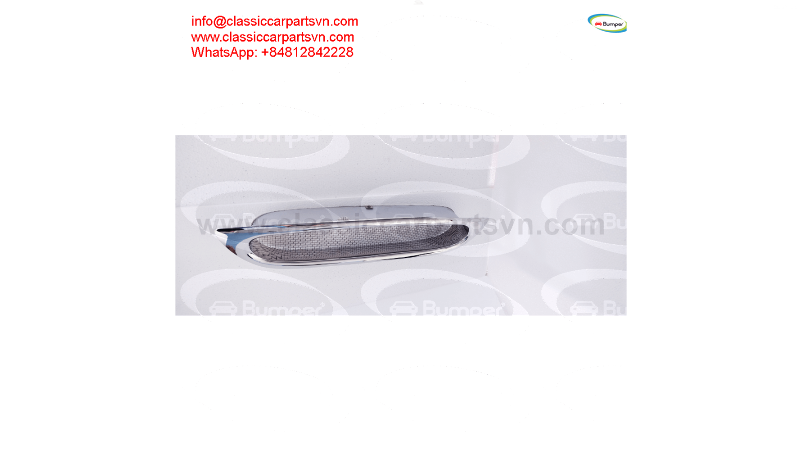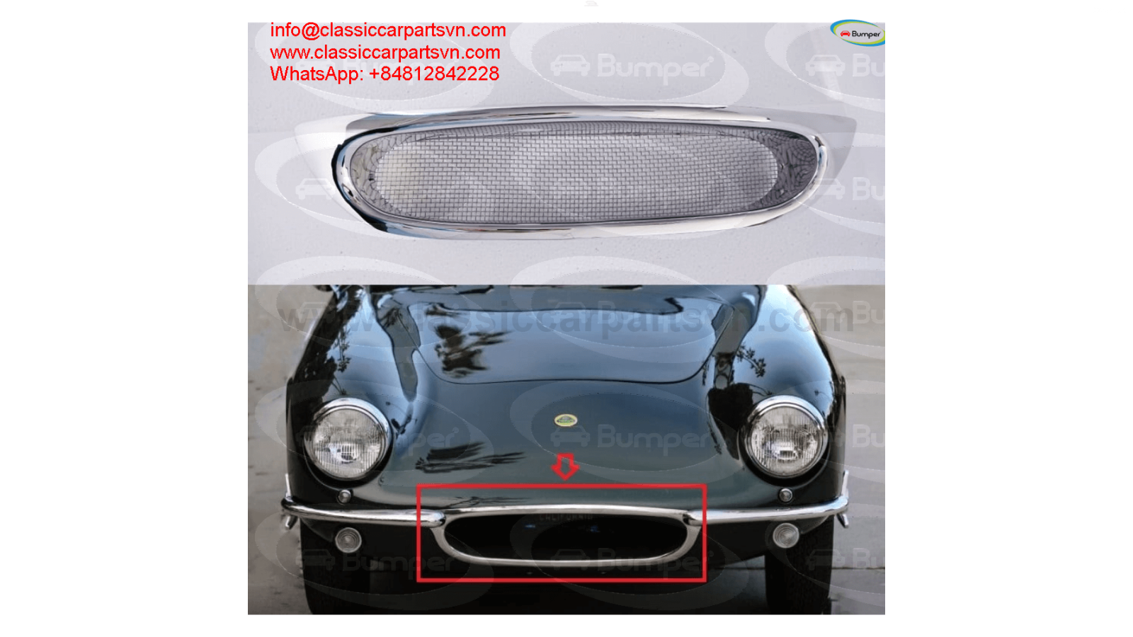 Lotus Elite S1 (1958-1963) a front grille new A full front grille new of 2 pcs. The product has shape and size like the original samples. So, they perfect fit on the car. Products are made of 304 stainless steel imported from Japan and India, especially with a chrome content higher than 30%, so they never rust, do not corrode or peel over time. Polished product – with a perfect shine (like chrome). This is the perfect replacement. Please visit the link: classiccarpartsvn.com/product/lotus-elite-s1-1958-1963-a-front-grille-new/ If you need all parts for any classic car, please contact me. Web: classiccarpartsvn.com Email: info@classiccarpartsvn.com WhatsApp: +84 81 284 2228 Fanpage: facebook.com/profile.php?id=100088684251588Lotus Elite S1 (1958-1963) a front grille new A full front grille new of 2 pcs. The product has...