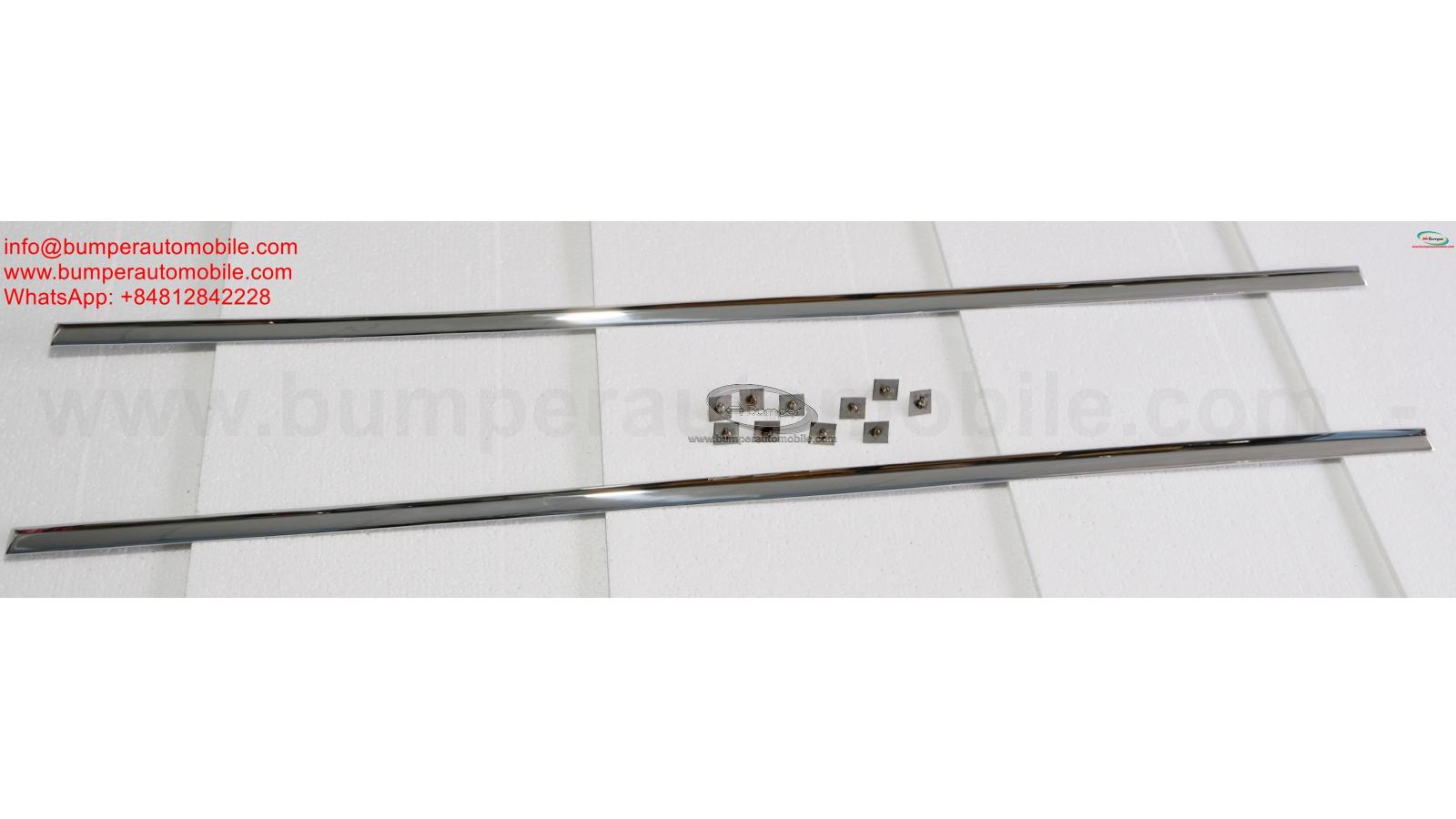 Moulding Decorative Rod Sill Trim for Mercedes 300 SL Gullwing/Roadster W198 A set including: a left and a right, 10 clips Trims is copy from original samples, so, shape and size like samples. Trims are made of one the best solid stainless steel SAE 304 which never gets rusty, 1.5-2mm thickness and Surface is polished bright mirror. Besides Mercedes 300 SL Gullwing/Roadster trims, I also have Datsun Roadster trims More than that, we always want to work towards developing more new models. So we are searching for samples from any customers who can cooperate with us to expand some kinds of products in stainless steel, rubber, steel, aluminum, copper, chrome such as bumpers, trims, plate number frames, parts of classic cars, modern cars, stainless steel tools for high-class bathrooms, stainless steel parts for high-end tables and chairs. The choice for your car: luxury – class. If you interest in this product, please contact. We can support for you: bumperautomobile.com Email: amy.bumperautomobile@gmail.com or info@bumperautomobile.com, WhatsApp: +84976133731; +84812842228 Facebook: facebook.com/tienbumper.tran.5/ Instagram: instagram.com/bumperautomobile/ Web: bumperautomobile.comMoulding Decorative Rod Sill Trim for Mercedes 300 SL Gullwing/Roadster W198 A set including: ...