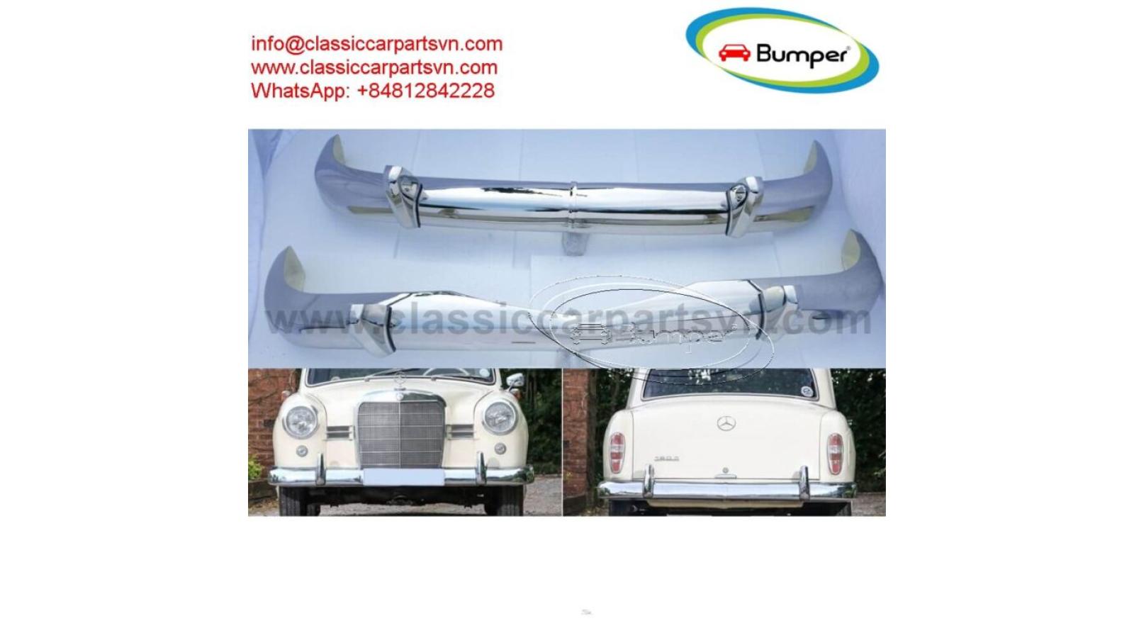 Mercedes Ponton 4 cylinder W120 W121 bumpers 180B, 180C, 180DB, 180DC, 190B, 190DB (1959-1962). A set bumper of 1 front bumper in 3 parts, 1 rear bumper in 3 parts, 4 x over riders, bolts and screw for full set. The product has shape and size like the original samples. So, They perfect fit on the car. Products are made of 304 stainless steel imported from Japan and India, especially with a chrome content higher than 30%, so they never rust, do not corrode or peel over time. Polished product – with a perfect shine (like chrome). This is the perfect replacement. Please visit the link: classiccarpartsvn.com/product/mercedes-ponton-w120-w121-4-cylinder-1959-1962/ If you need all parts for any classic car, please contact me. Web: classiccarpartsvn.com Email: info@classiccarpartsvn.com Fanpage: facebook.com/profile.php?id=100088684251588 WhatsApp: +84 81 284 2228CarsNI.uk can take no responsibility for any errors which may appear in listings. Please confirm details with the seller when making an enquiry.